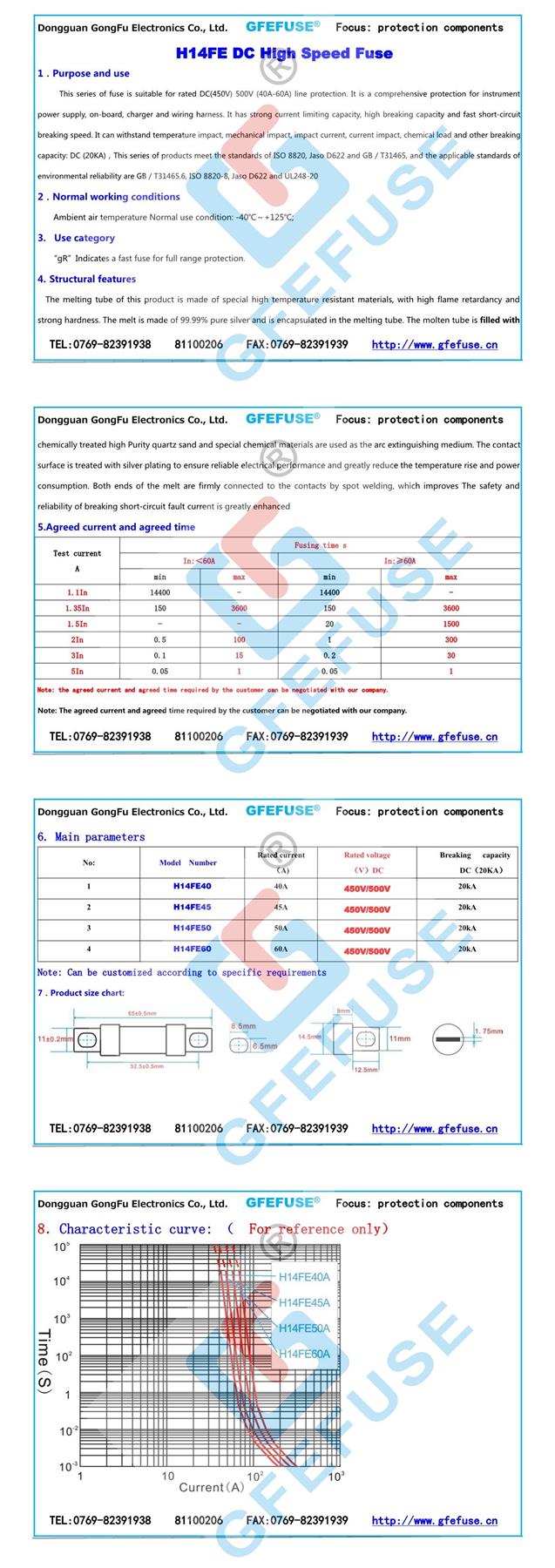 H14FE快速直流熔斷器(40A-60A)(450V500V)