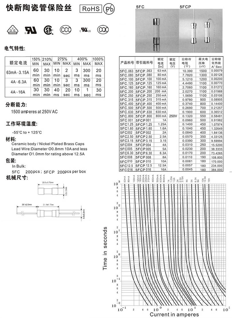 5.2x20mm陶瓷管快斷保險(xiǎn)絲